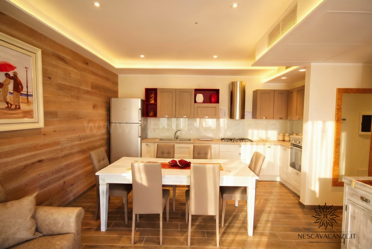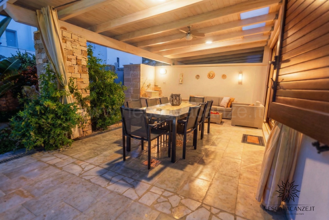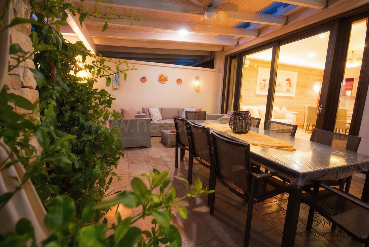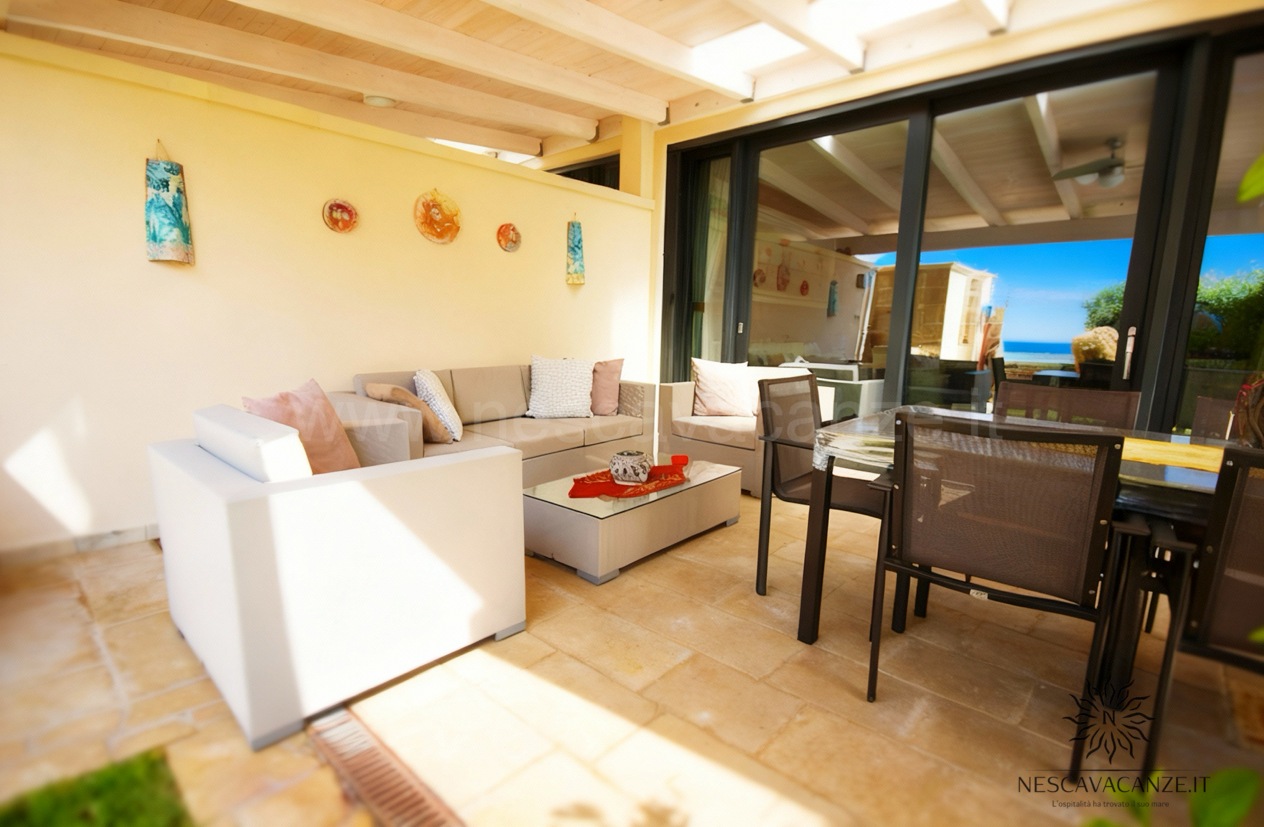 La villetta si compone di una grande veranda arredata con mobili da giardino, ideale area giochi per i più piccoli e bella location per le vostre grigliate con gli amici. Da qui è possibile entrare nel cuore della casa vacanze dove il soggiorno di forte impatto visivo saprà stupirvi e catturarvi per l'armonia e per la ricercatezza degli arredamenti. Non solo questo: rifiniture, pitture delle pareti, tendaggi e tutti i comfort che abbiamo scelto per voi contribuiranno a rendere Casa Dune la soluzione migliore per le vostre vacanze. Questa villetta, infatti, oltre a due camere da letto e doppi servizi offre lavatrice, ventilatore a pale in tutte le stanze, impianto di condizionamento centralizzato in tutte le camere, grande tv con ricevitore satellitare, asciugacapelli, barbecue a legna, zanzariera su tutti gli infissi, aspirapolvere, doccia esterna con acqua calda e acqua fredda e perfino la lavastoviglie. Se cercate una vacanza piena che sia rilassante fino in fondo allora è casa Dune che fa per voi! Noi di Nescavacanze vogliamo rendervi il massimo e con casa Dune siamo sicuri di riuscirci.
