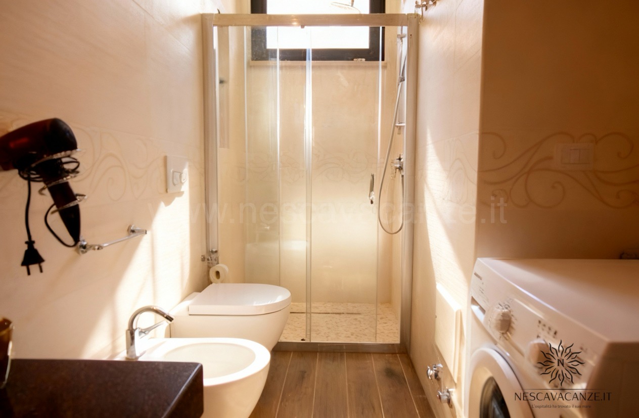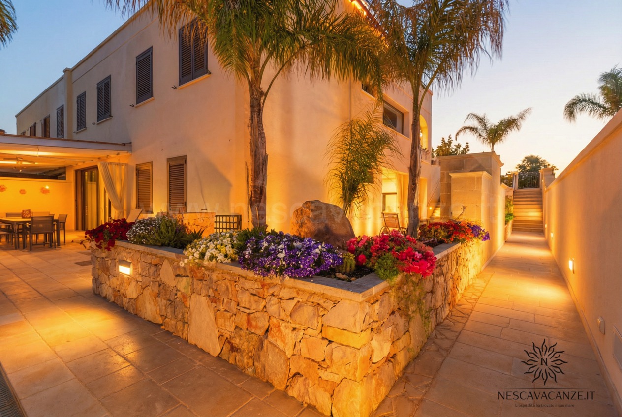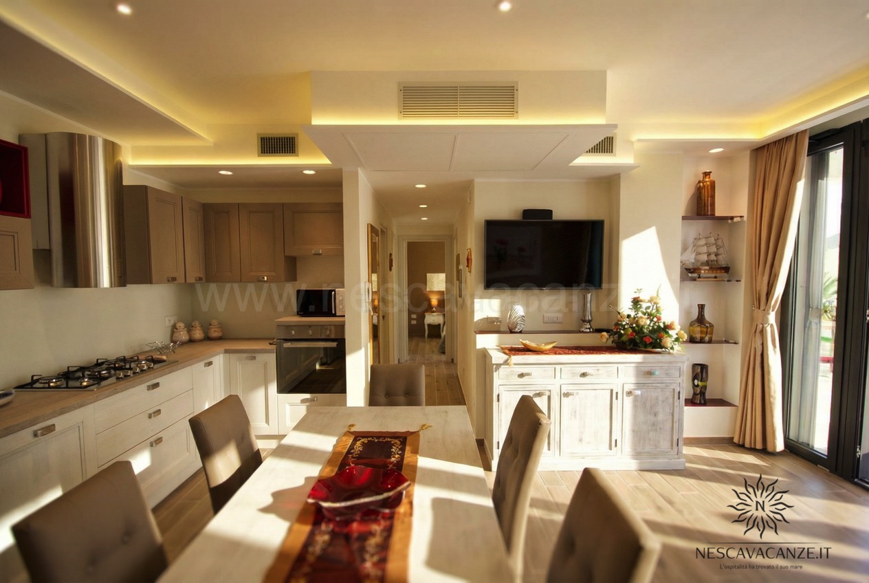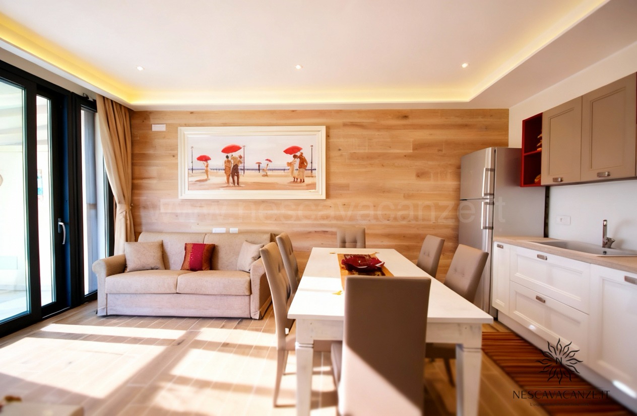 La villetta si compone di una grande veranda arredata con mobili da giardino, ideale area giochi per i più piccoli e bella location per le vostre grigliate con gli amici. Da qui è possibile entrare nel cuore della casa vacanze dove il soggiorno di forte impatto visivo saprà stupirvi e catturarvi per l'armonia e per la ricercatezza degli arredamenti. Non solo questo: rifiniture, pitture delle pareti, tendaggi e tutti i comfort che abbiamo scelto per voi contribuiranno a rendere Casa Dune la soluzione migliore per le vostre vacanze. Questa villetta, infatti, oltre a due camere da letto e doppi servizi offre lavatrice, ventilatore a pale in tutte le stanze, impianto di condizionamento centralizzato in tutte le camere, grande tv con ricevitore satellitare, asciugacapelli, barbecue a legna, zanzariera su tutti gli infissi, aspirapolvere, doccia esterna con acqua calda e acqua fredda e perfino la lavastoviglie. Se cercate una vacanza piena che sia rilassante fino in fondo allora è casa Dune che fa per voi! Noi di Nescavacanze vogliamo rendervi il massimo e con casa Dune siamo sicuri di riuscirci.