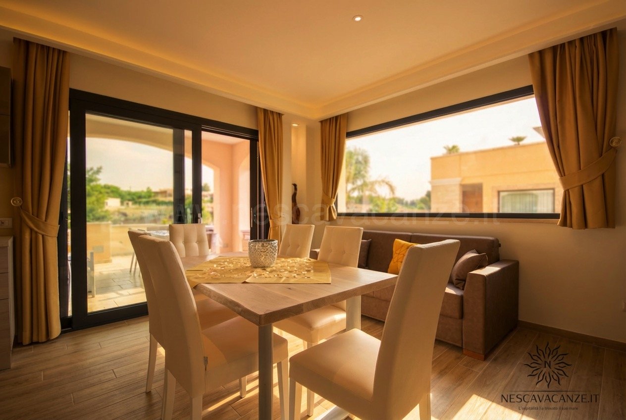 Eleganza, appunto, è la sensazione che avrete entrando in appartamento. In Casa Giglio abbiamo concentrato la nostra decennale esperienza nel settore costruendo un appartamento lussuoso e confortevole con l'unico fine di garantirvi la migliore vacanze possibile nel bel Salento, facendovi sentire come a casa vostra. Questa casa vacanze perfetta in ogni suo particolare e in grado di ospitare fino a 6 persone è ubicata nel centro residenziale di Pescoluse in zona tranquilla e accessibile ai servizi, quali market, tabacchi, cartoleria ecc.