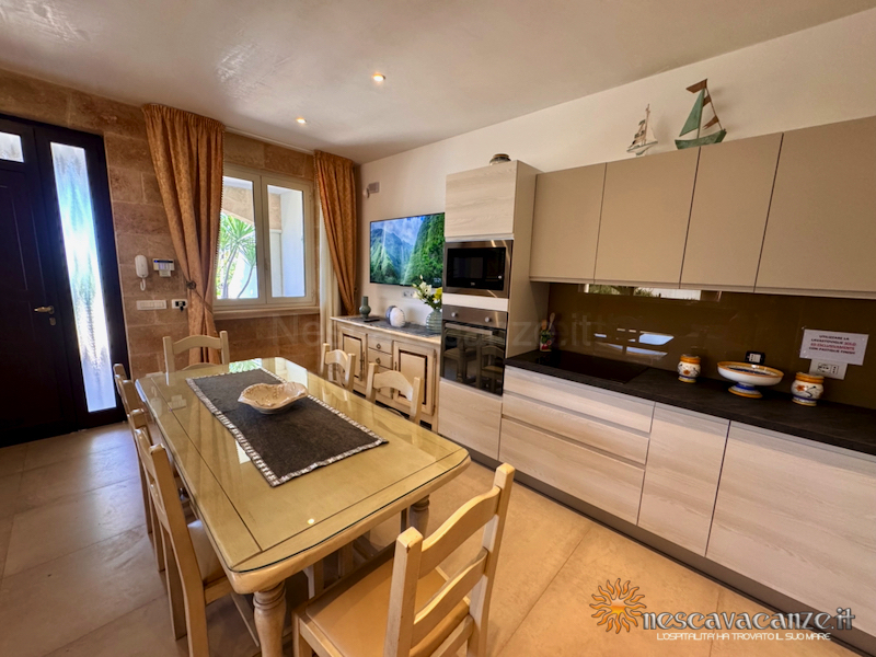 E noi che cerchiamo il meglio per ogni minimo dettaglio, non potevamo che realizzare una casa vacanze tanto lussuosa quanto comoda per tutti coloro che cercano una casa in Salento. La casa vacanze pescoluse 1 comprende un ampio soggiorno con angolo cottura, due bagni e due stanze da letto, una grande veranda coperta e attrezzata con mobili da giardino e posto auto privato. Il tutto è arricchito da quei servizi che noi di Nescavacanze cerchiamo di non far mancare: lavatrice, ventilatore a pale in tutte le stanze, impianto di condizionamento centralizzato in tutte le camere (aria fredda e aria calda), tv con ricevitore satellitare, asciugacapelli, barbecue a legna, zanzariera su tutti gli infissi, cucina totalmente attrezzata di ogni suo accessorio e doccia esterna con acqua fredda e acqua calda. Insomma, Pescoluse 1 offre tutti quegli ingredienti necessari per rendere le vostre vacanze nel salento, in Puglia, indimenticabili e irripetibili.