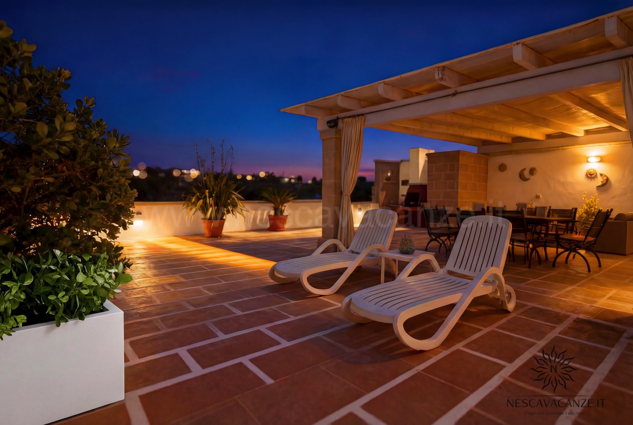 Il tutto è arricchito da quei servizi che noi di Nescavacanze cerchiamo di non far mancare: lavatrice, ventilatore a pale in tutte le stanze, impianto di condizionamento centralizzato in tutte le camere (aria fredda e aria calda), tv con ricevitore satellitare, asciugacapelli, barbecue a legna, zanzariera su tutti gli infissi, impianto di aspirapolvere centralizzato in tutte le camere e doccia esterna con acqua fredda e acqua calda. Noi di Nescavacanze cerchiamo di rendervi il massimo; per questo abbiamo pensato a questa splendida casa vacanze in salento per le vostre vacanze nel Salento a Pescoluse.