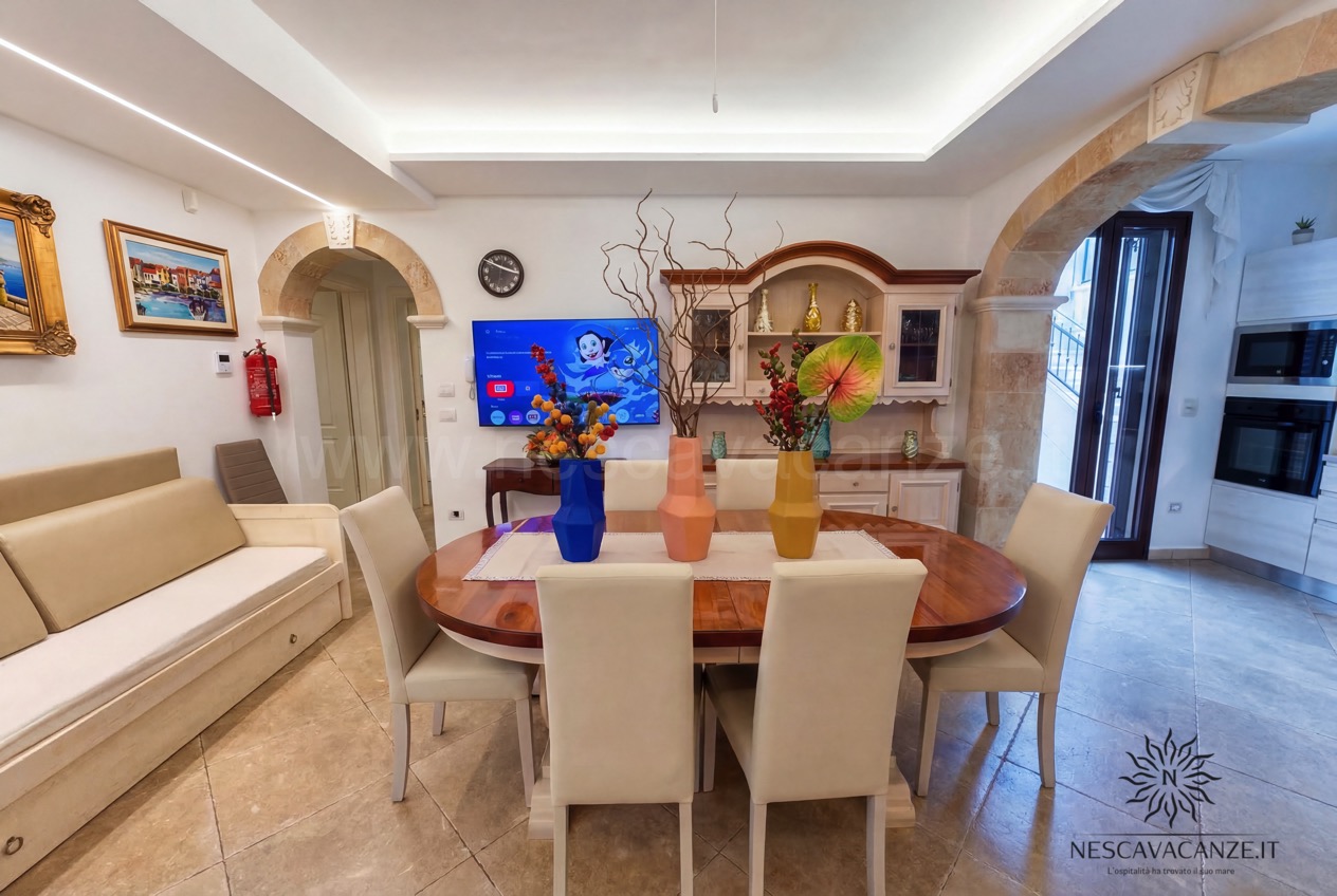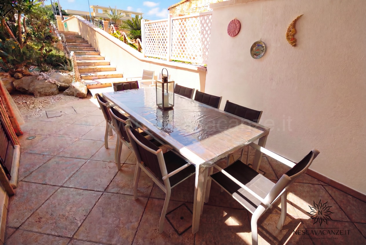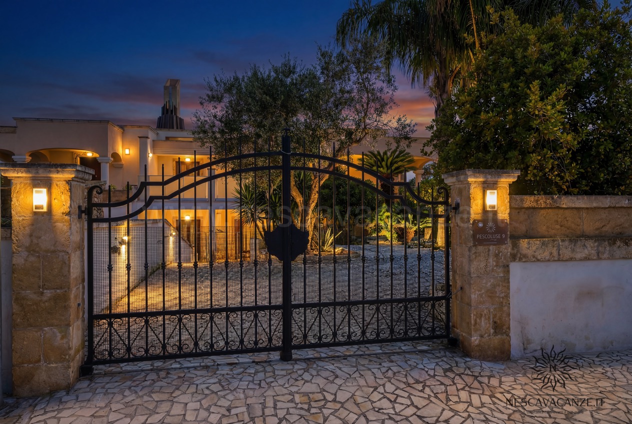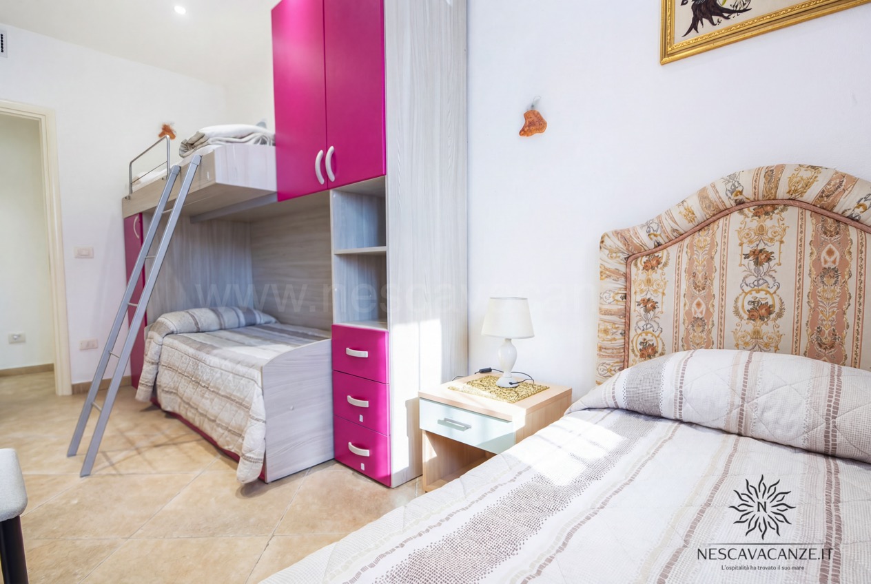 Quest'appartamento di vacanze in salento è un quadrilocale con 9 posti letto, del quale ciò che colpisce ancora una volta sono gli spazi esterni, in parte adiacenti a quelli riservat per casa pescoluse 8 e in parte posizionati in modo tale da essere riparati da tutto ciò che è circostante, grazie alla presenza di un grande gazebo, rivestito da tendaggi che coprono lo sguardo ad occhi indiscreti, potendo vivere momenti con se stessi in piena tranquillità . Inoltre la sua architettura rifinita con le pietre delle splendenti terre salentine è un piacere per gli occhi. E se già l'esterno colpisce, l'interno non è da meno: casa vacanze Pescoluse 9 è curato nei minimi dettagli; un ampio soggiorno con angolo cottura si apre all'ingresso dell'appartamento, progettato in modo tale da dare quella sensazione di accoglienza al visitatore, sin dai primi momenti. Vi sono poi due bagni e tre camere da letto, di cui due matrimoniali oltre che una terza con letti singoli. Il tutto è arricchito da quei servizi che noi di Nescavacanze cerchiamo di non far mancare: lavatrice, ventilatore a pale in tutte le stanze, impianto di condizionamento centralizzato in tutte le camere (aria fredda e aria calda), tv con ricevitore satellitare, asciugacapelli, barbecue a legna, zanzariera su tutti gli infissi, impianto di aspirazione centralizzato e doccia esterna con acqua fredda e acqua calda. Insomma, Casa vacanze Pescoluse 9 è la migliore soluzione che gruppi di famiglie o amici possano trovare, per vivere una splendida vacanza a pescoluse nel salento indimenticabile e irripetibile.